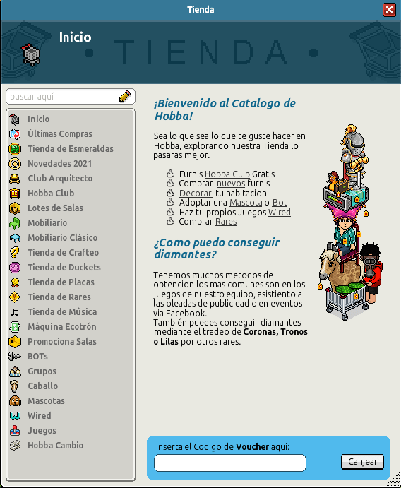 Una de las cosas más importantes de este habbo holo es su tienda. Este catálogo funciona muy diferente al de Habbo, así que hay que explicar algunas cosas antes de entrar más a fondo.